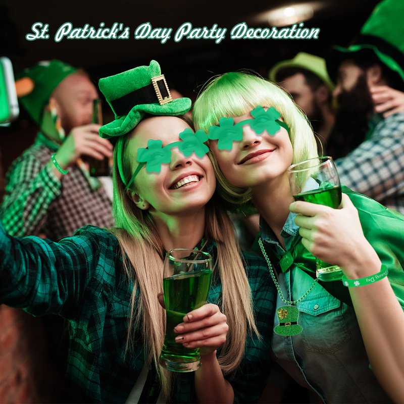 - 🍀Package includes: you will receive 4 pairs of St Patrick's Day glasses, 4 pieces beads necklaces in 2 different styles, 4 pieces silicone wristbands and 10 pieces copper, eough varieties and quantities can meet your holiday decoration needs.