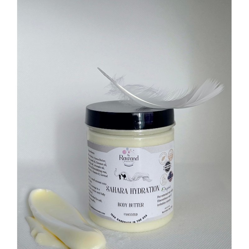Experience the natural richness of our handmade body butter, meticulously crafted with a nourishing blend of shea butter, cocoa butter, coconut oil, and avocado oil. Each 7oz jar is meticulously prepared to offer profound hydration without any greasy after-feel. Our carefully balanced formula absorbs rapidly, leaving your skin feeling exceptionally soft and deeply moisturized. Delight in the gentle, skin-loving properties of our body butter, thoughtfully designed to cater to your skin's needs. Elevate your daily skincare routine with our indulgent body butter, providing a lavish treat for your skin with every application. -7oz jar -Handmade in the USA