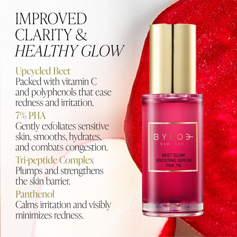 BYROE Beet Glow Boosting Face Serum | Target Redness & Dullness for a Smooth Complexion | Brightening Serum with Peptides and Vitamin C from Upcycled Beets | Vegan, 1.01 Fl Oz