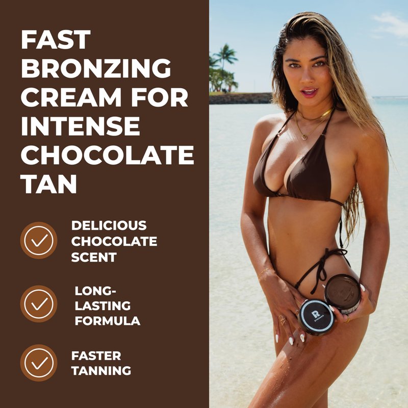 - This absolute tanning innovation will help you achieve deep chocolate tan with less exposure to the sun or a sunbed – not to mention it smells just like real chocolate!