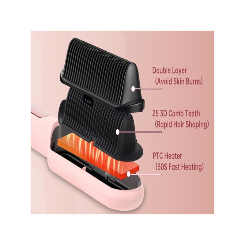 - Safe&Flexible: Hair Straightening brush with dual comb design avoids high temperature to burn our hair and skin. In addition, after 30 minutes, it will automatically shut off, keep you from fire risk. Hair straightener is only 0.88lb, lightweight and portable. The 360° rotating wire allows you flexibly brush hair without worrying about entanglement.