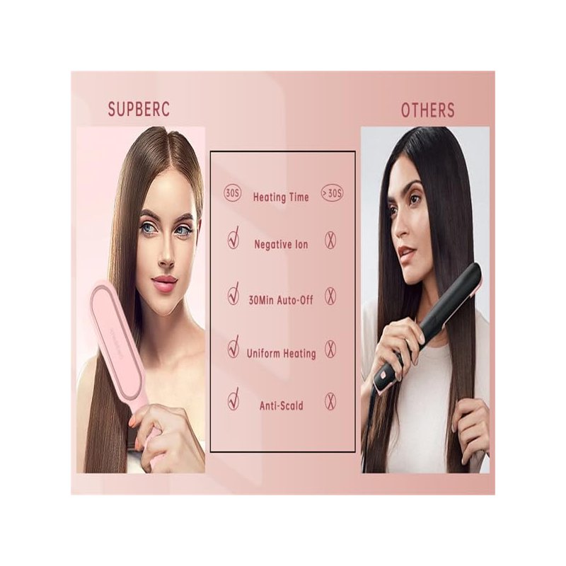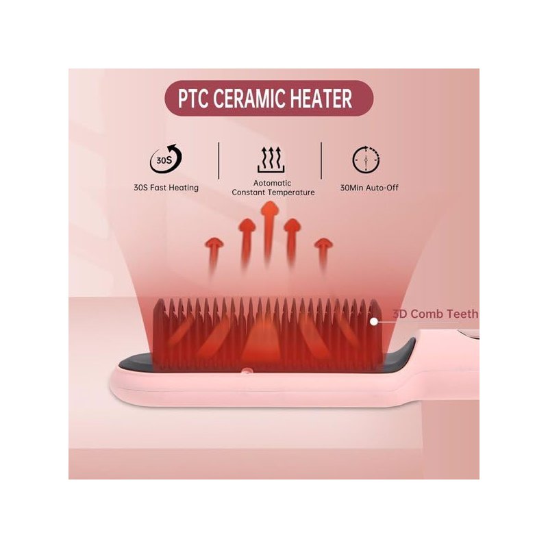 c, 30s Fast Heating, Hair Straightening Comb with LED Display, Anti-Scald & Auto-Shut Off Hair Straightening Iron (Pink)