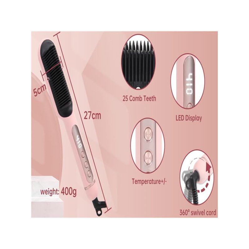- Adjustable&Convenient: With 9 adjustable temperatures from 240℉ to 410℉(115℃ to 210℃), hair straightener comb is available for different hair types, such as thin, normal, dyed, thick, curly. LED display screen is convenient for you to adjust the desired temperature in time.