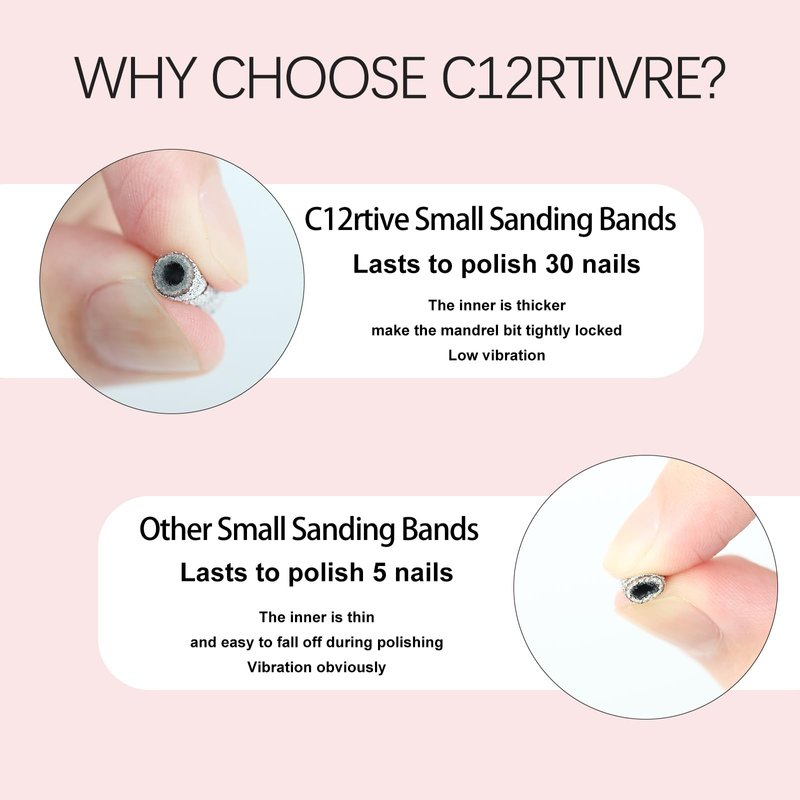 - UPGRADED 3MM SANDING BANDS: Comes with 100Pcs of #150 grit small sanding bands & 2Pcs 3mm small mandrel bit. Create a comfortable manicure experience when removing gel nails, shaping acrylic nails, and blending smooth surfaces.