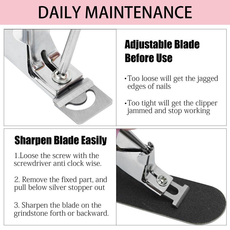 - Ergonomic Non-Slip Handle Acrylic Nail Clipper: The pink non-slip handle makes the nail clipper easy to control, giving you more control and grip when holding and cutting. The curved handle increases the contact area with the palm of your hand to avoid muscle fatigue caused by prolonged use.