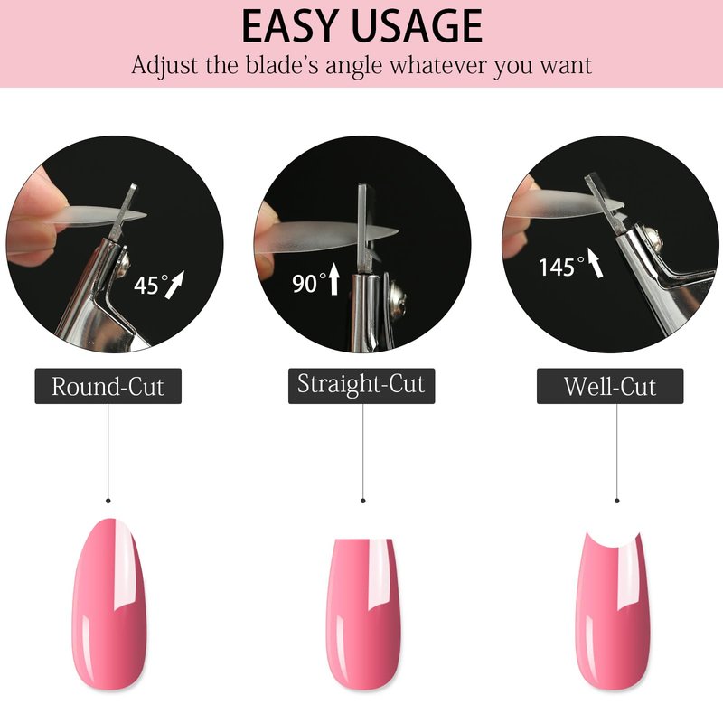 - Wide application: This nail clipper has 3 adjustable angles for perfect manicure and manicure. Keep it at 45° for round nails, 90° for square nails, and 135° for well cut nails. You can also trim your favorite nail shape according to your preference, such as square, square, almond-shaped, ballet-shaped, coffin-shaped, stiletto-shaped, etc.