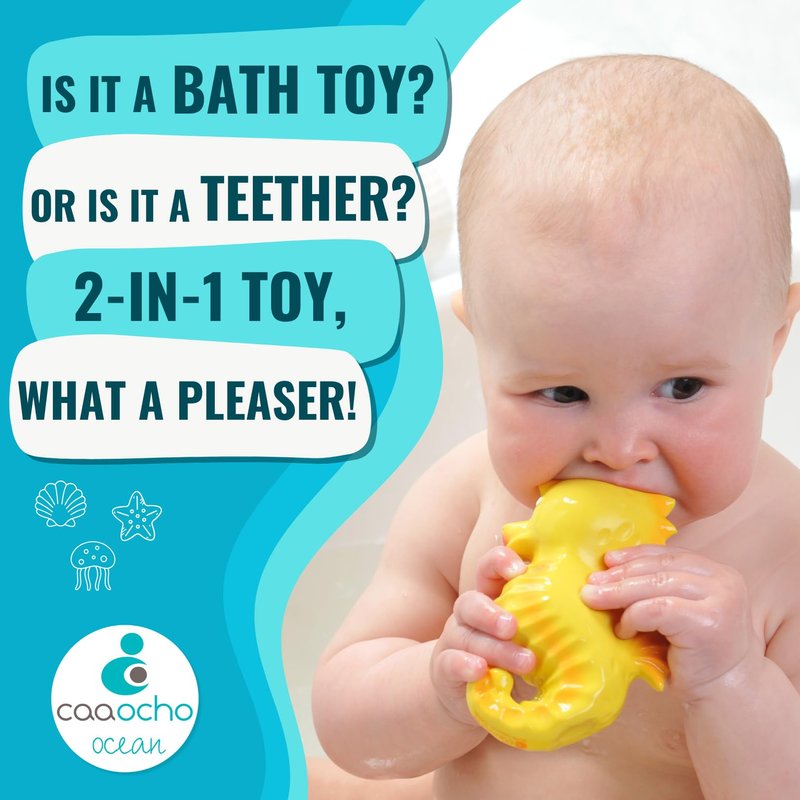- [LONG-LASTING AND SAFE]: As a bath toy for babies, this Seahorse is designed to last with durable natural rubber. This bath toy is perfect for babies, infants and even toddlers, offering a safe toy option. Its natural rubber composition makes it one of the best natural baby toys.