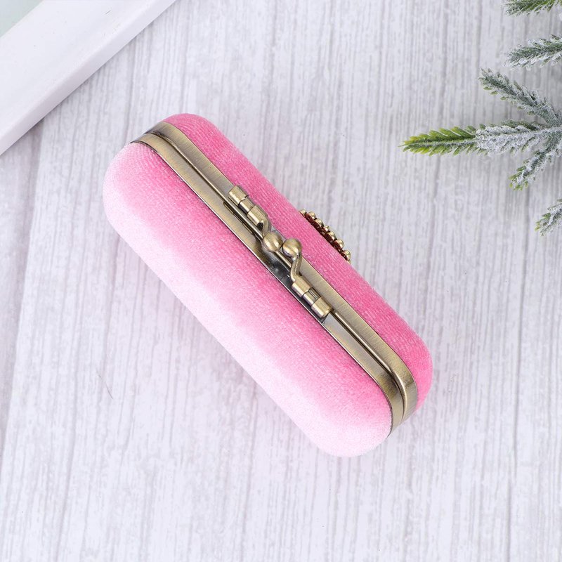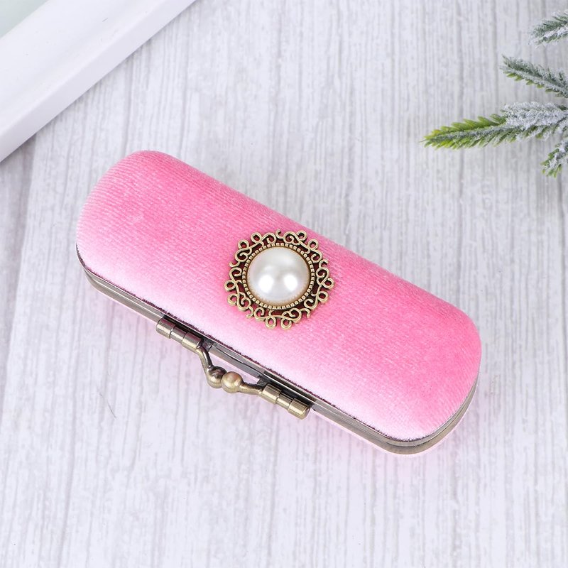 Cabilock Fashion Retro Velvet Lipstick Box Lip Balm Organizer Bag Durable Soft Cosmetic Storage Case with Mirror (Pink)
