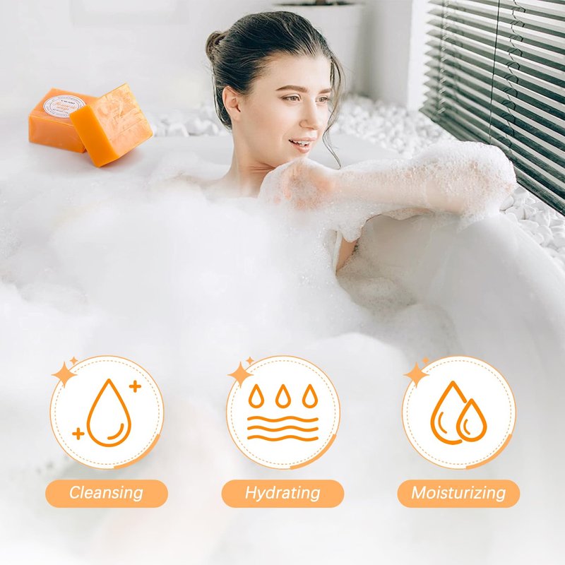 - Daily Cleansing for Face & Body: Our turmeric soap bar can clean pores and impurities on your face and body, promoting smoother skin texture. You will receive 2 turmeric face wash soap and give away a soap foaming net.