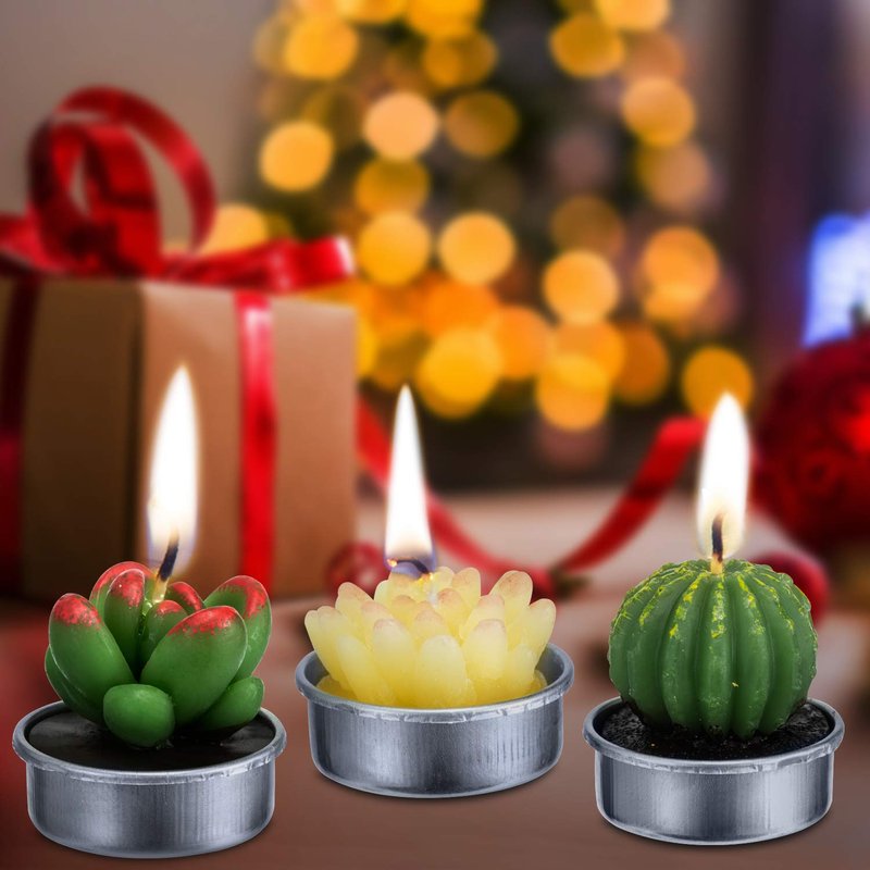 Cactus Tealight Candles(18 Pcs Gift Boxed), Artificial Succulents Decorative Tea Light Candles,Perfect for Birthday Wedding Party Home Decor