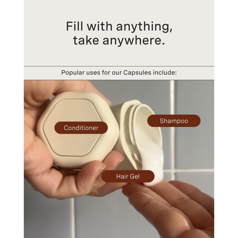 - TSA-COMPLIANT & 100% LEAKPROOF: Rest easy while traveling with our modular travel capsules. They are not only TSA-compliant but also 100% leakproof, ensuring your liquids and essentials stay securely contained. Pack these carry on reusable containers and say goodbye to messy spills on your journeys!