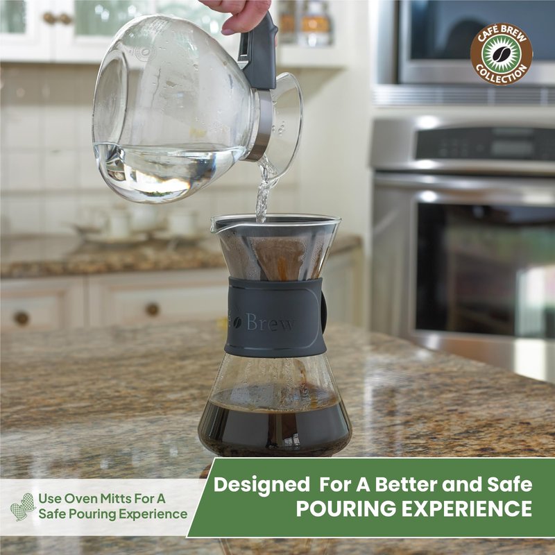 - Cafe Brew’s 12 Cup Glass Stovetop Whistling Kettle is perfect for use on Electric, Glass Cook-Top, and Gas Ranges.