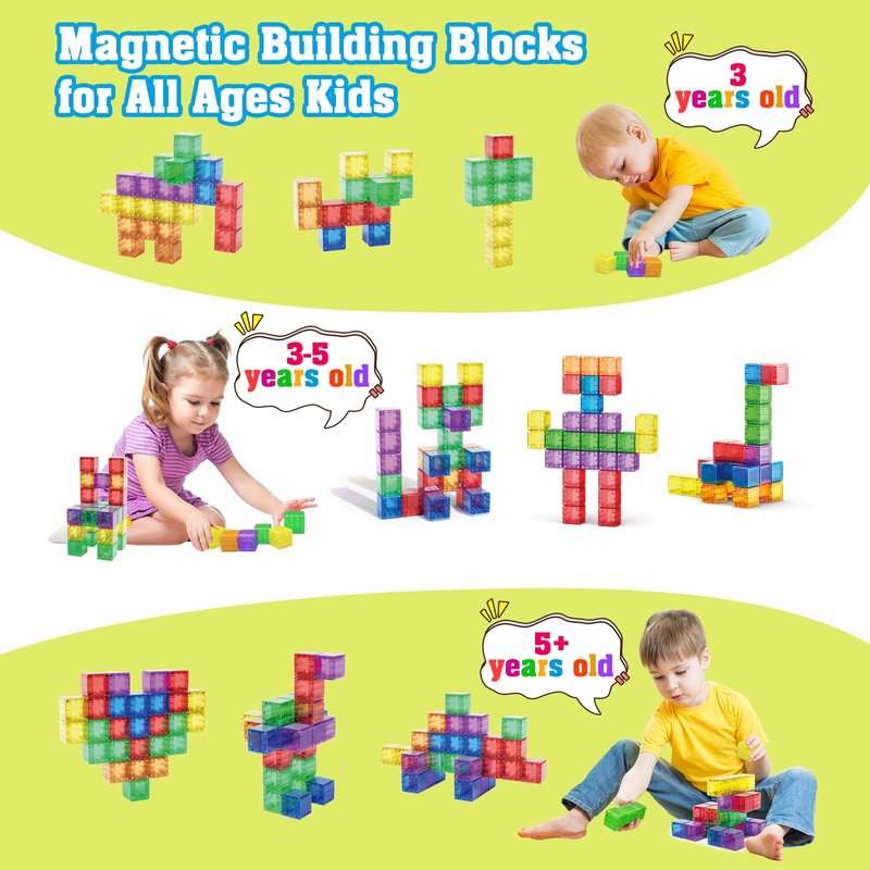 - 【TOP IDEA FOR TODDLER TOYS GIFTS 】Our magnetic blocks toys for ages 2-4 is a valuable and versatile gift that brings joy and educational value to children of all ages and occasions. they provide fun and excitement while developing a wide range of skills and abilities. whether it's for a birthday, Christmas or any other special occasion, perfect as STEM toys/Autism toys/Sensory toys/Montessori toys for 2 3 4 5 6 7 8 year old boys girls.