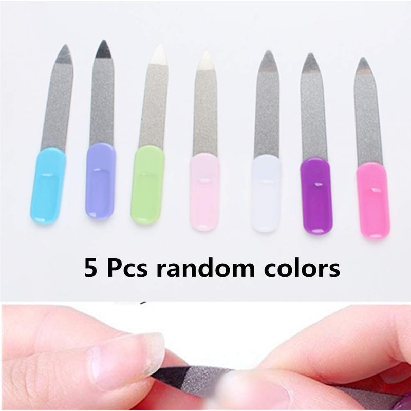 Package Include:5 Pcs Nail Files with random colors. Dimensions: 3.5" x 0.5" x 0.1" each. Can be stored in your bag or can be stored at home or salons for everyday use. very convenient and portable. Nail File Uses: polished a surface& repair A type. Made of top quality stainless steel and emery board material with bright plastic handle. Easy and effective to use. When you make manicure at home, different color nail files will give you a different mood.