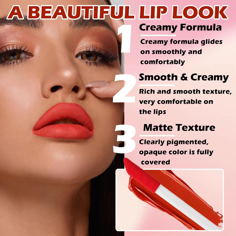 -We carefully selected 5 most popular matte liquid lipstick for girls, from natural daily makeup to night makeup, to meet the needs of different occasions and moods. -Lip gloss has a luxurious matte texture with high color rendering, which can easily cover the lip color, present a velvety matte effect, and bring a silky and soft touch. -Lip tint stain is made of natural plant ingredients, which can deeply nourish the lips, achieve a long-lasting moisturizing effect, and keep the lips hydrated and full.