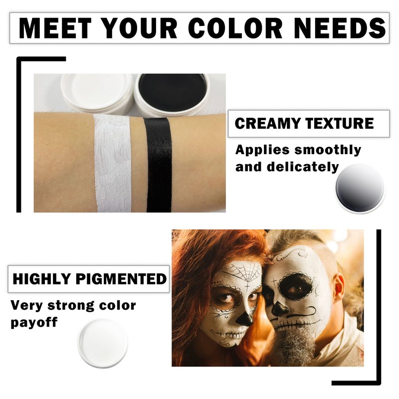 - 【Face Body Paint】Black face paint is available in black and white, and can be used for lines, primers, color mixing, and layering to meet all your artistic makeup needs.