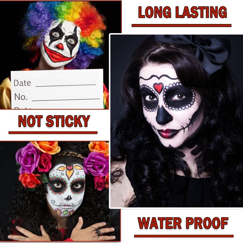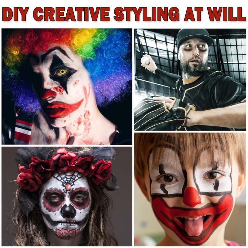 - 【Applicable Occasion】Halloween face paint is perfect for Halloween SFX makeup for goth, vampire, clown, pantomime, zombie, cosplay, drama, stage, performance, also for professional baseball football softball sports eye black makeup.
