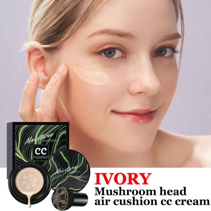- 【PRODUCT EFFICACY】Mushroom head air cushion CC cream can moisturize, control oil, waterproof and sweat, natural concealer, hide pores, even skin tone, create a temperament makeup, and show a more perfect skin tone.