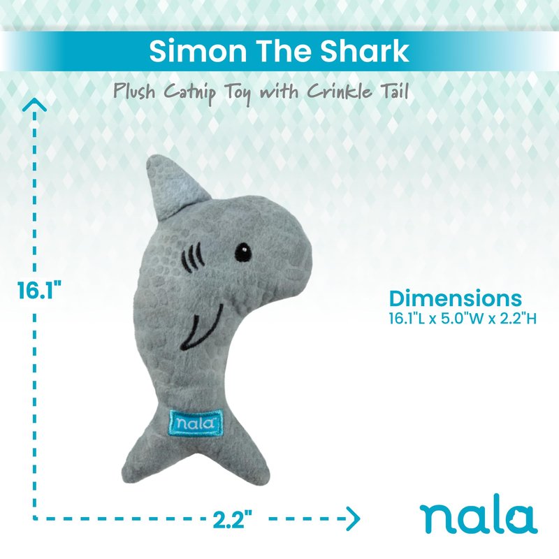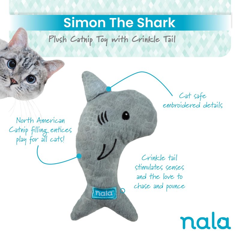 • SHARK ATTACK! Simon the shark will be your cat's new best friend. Filled with catnip and with a crinkle tail, your cat will have a new best friend.