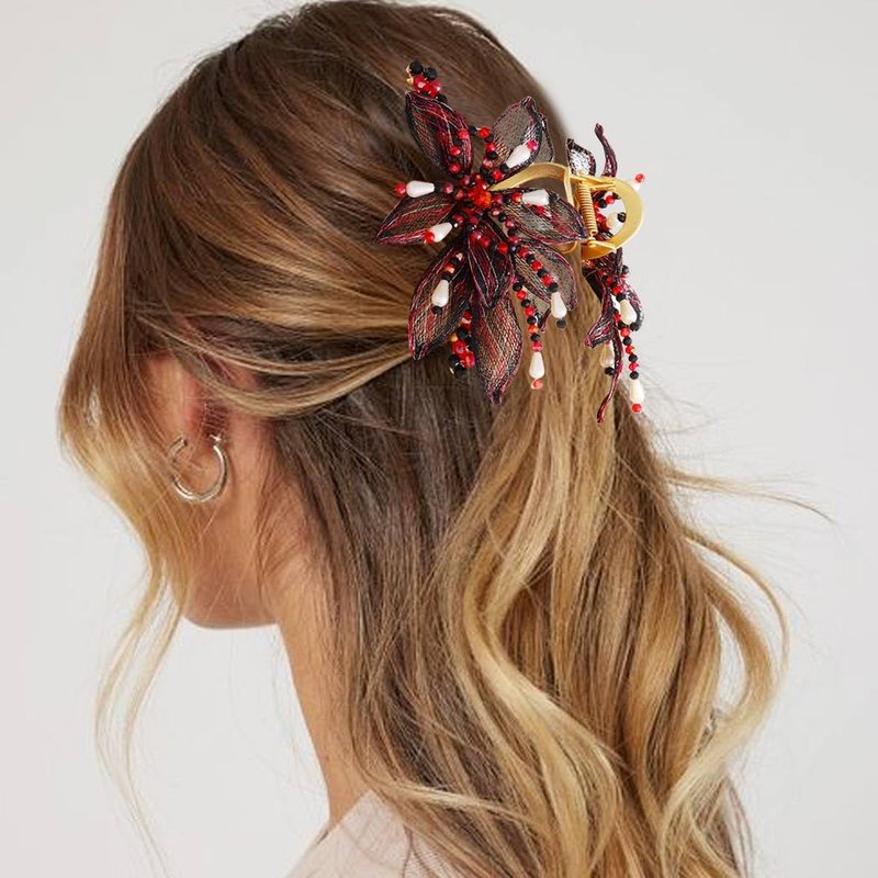 - Floral hair clip claw- on the basis of the smooth golden clip, the craftsmen weave flowers and beads, sturdy and exquisite, elegant and charming.