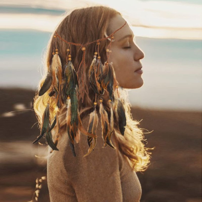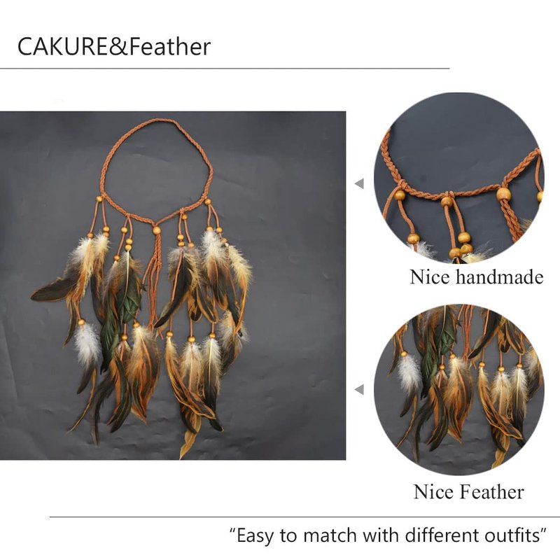 CAKURE Feather Headbands Gypsy Headpiece Indian Hair Band Adjust Headdress Handmade Feather Hair Accessories (Type C)