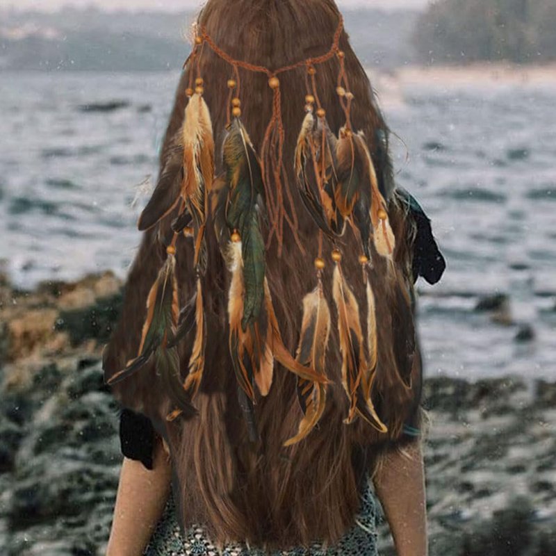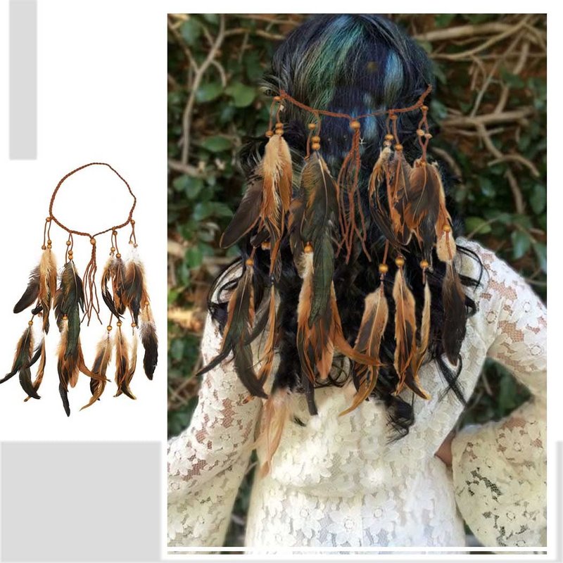 - Gypsy accessories for women is made by feather,wood bead.The color as picture show.