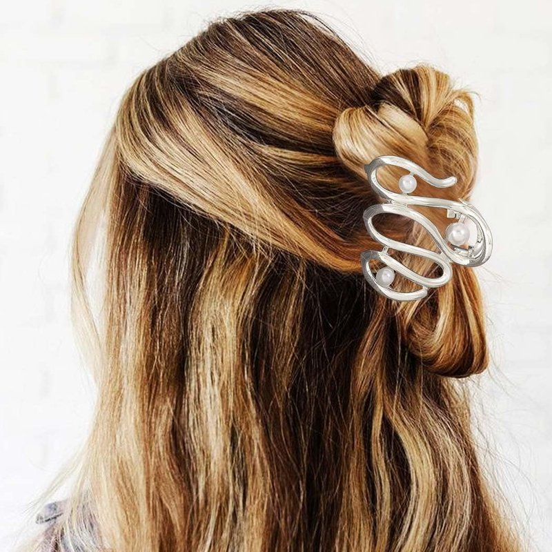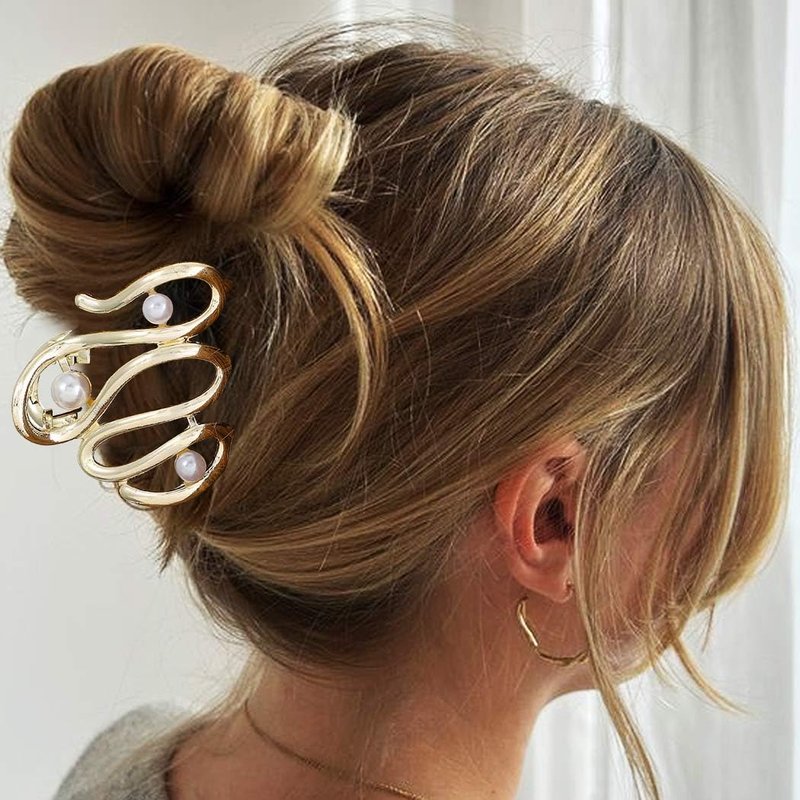 - Gold metal hair clips are made of adopt irregular snake design and decorated with pearl, this unique style make this hair claw looks very cute and special.
