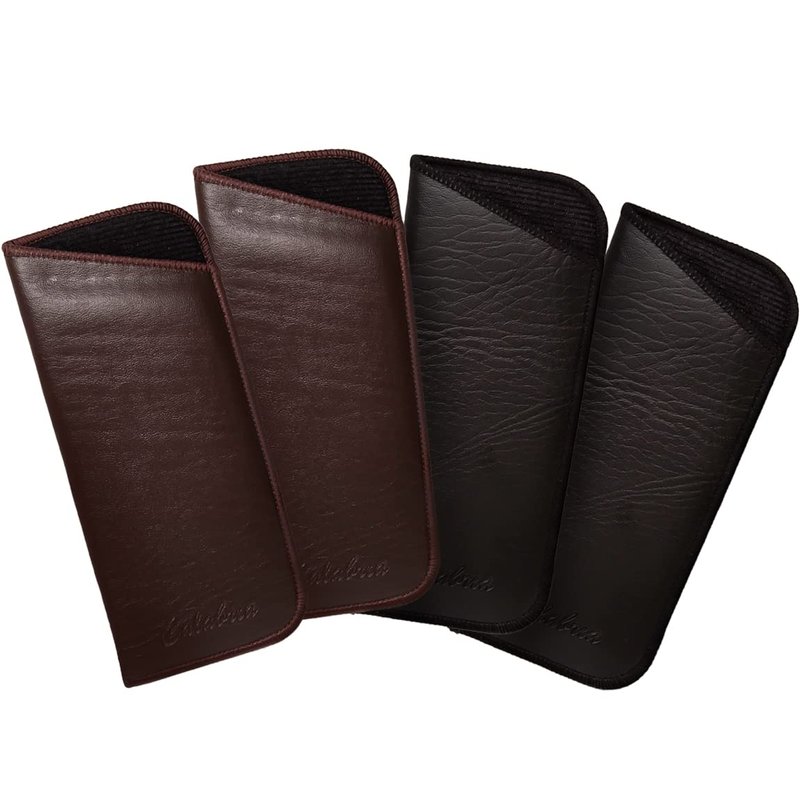 Calabria Slip-In Eye Glasses Case Faux Leather Felt Black Brown 4Pack Men Women Soft Eyeglasses Pouch Sunglasses Holder Bag