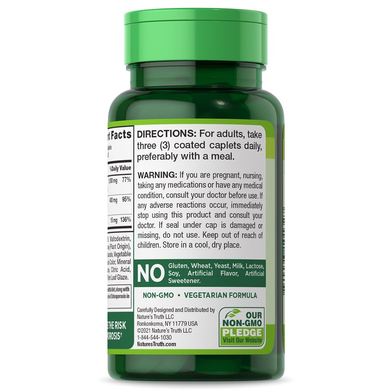 Calcium Magnesium Zinc Supplement | 90 Caplets | Non-GMO and Gluten Free | by Nature's Truth