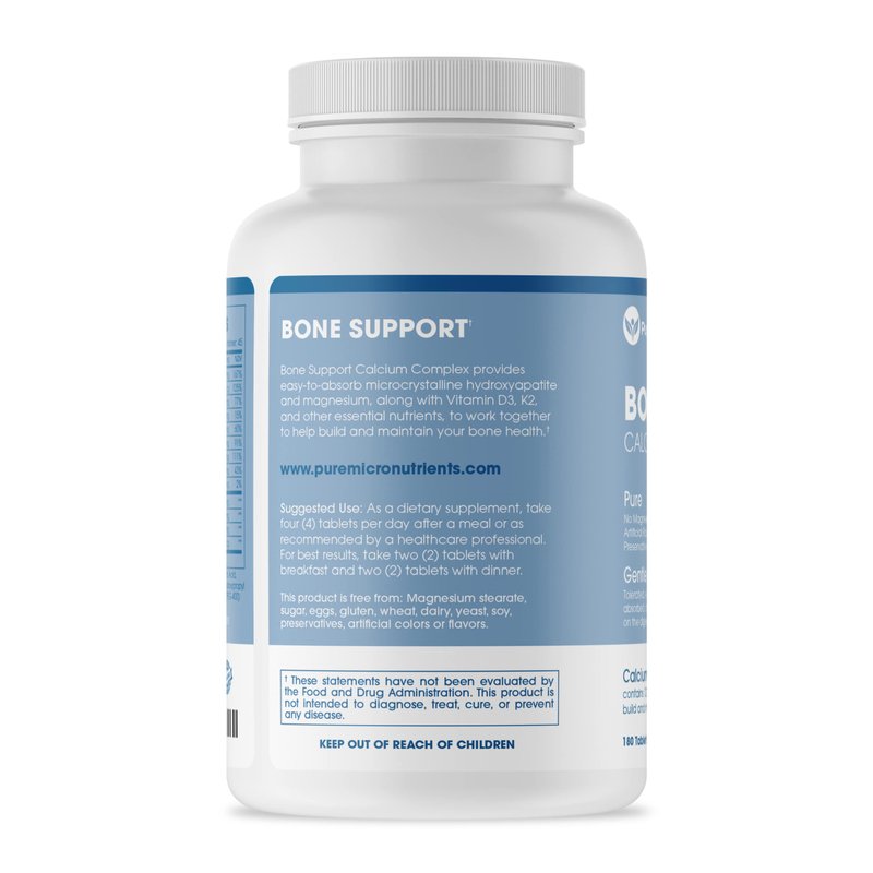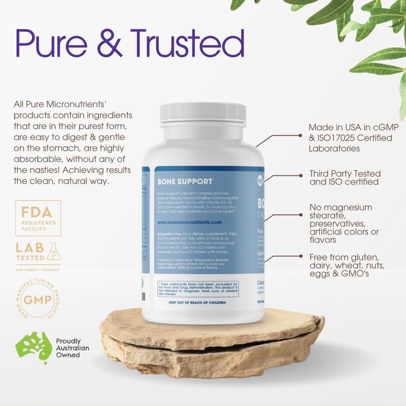 - NATURAL, PURE & TRUSTED – Bone Support contains only pure ingredients; gmo free, magnesium stearate, preservatives or other non-active ingredients - so you can reap the benefits, nurture & protect your body, without any of the Nasties. Made with Kosher & Halal ingredients. #1 Pharmaceutical Grade, USA MADE, Third Party Tested with a 100% Lifetime Satisfaction Guarantee, Bone Support is a complete Calcium Supplement.