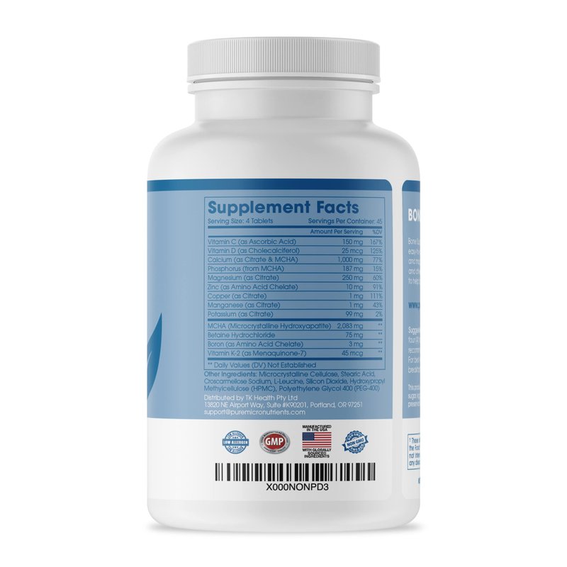 Pure Micronutrients’ Bone Support is an Easy-to-Swallow gentle supplement that provides 100% of your required daily intake.