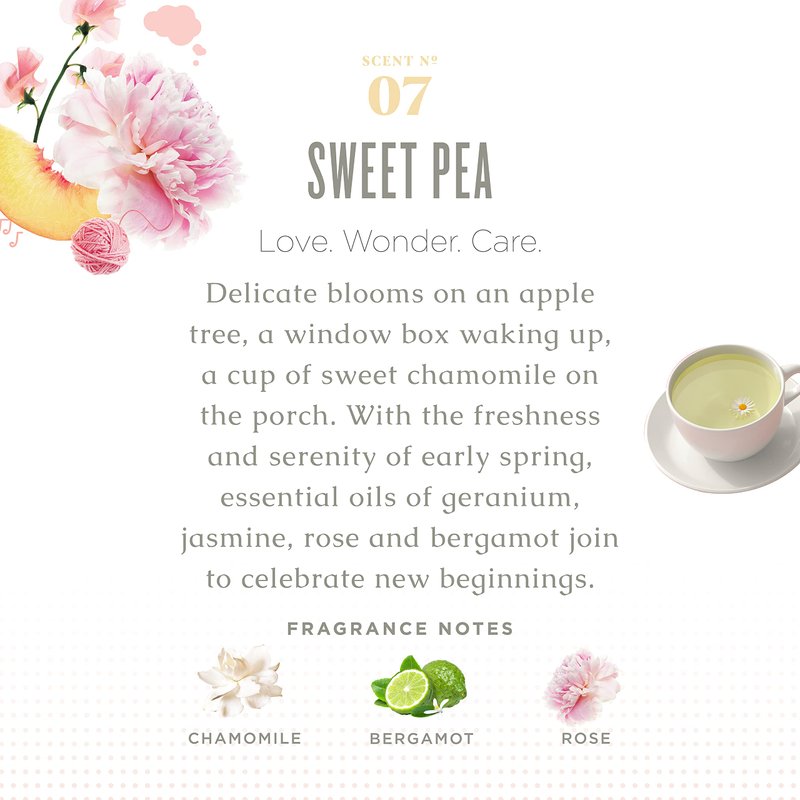 - It’s the perfect spring day. A warm breeze wakes the sleeping willow and you hear the giggles of your little one inside the house. This perfect moment is the simplistic charm of Sweet Pea.