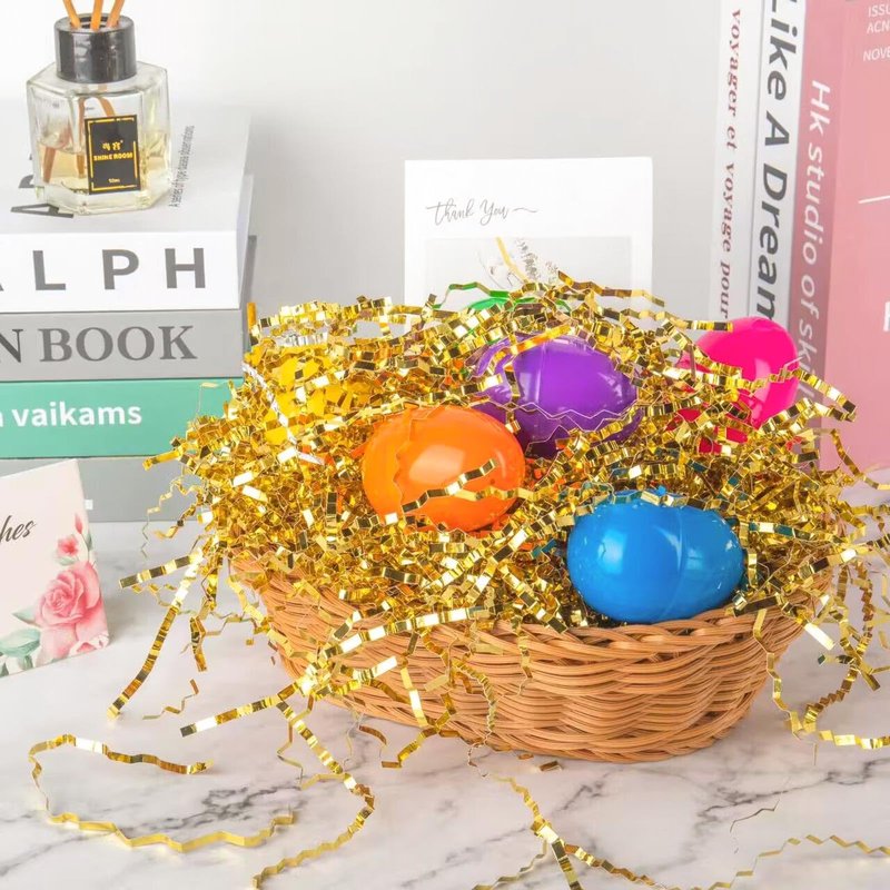 - 【Customize by yourself】- Fluff the crinkle cut paper shred filler when you pull it out of the bag, so you can create the volume you desire and stretch the gift box basket filler.
