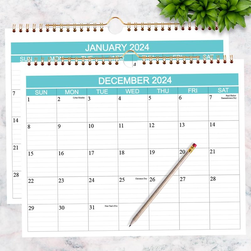 - EYE-CATCHING DESIGN - This 2024 wall calendar uses classical teal color, planning your everyday in a fresh way. Federal holidays highlighted in different color to help remind you of every important holiday and manage your life efficiently