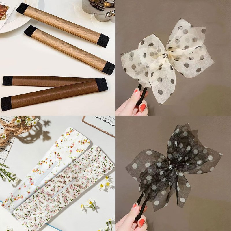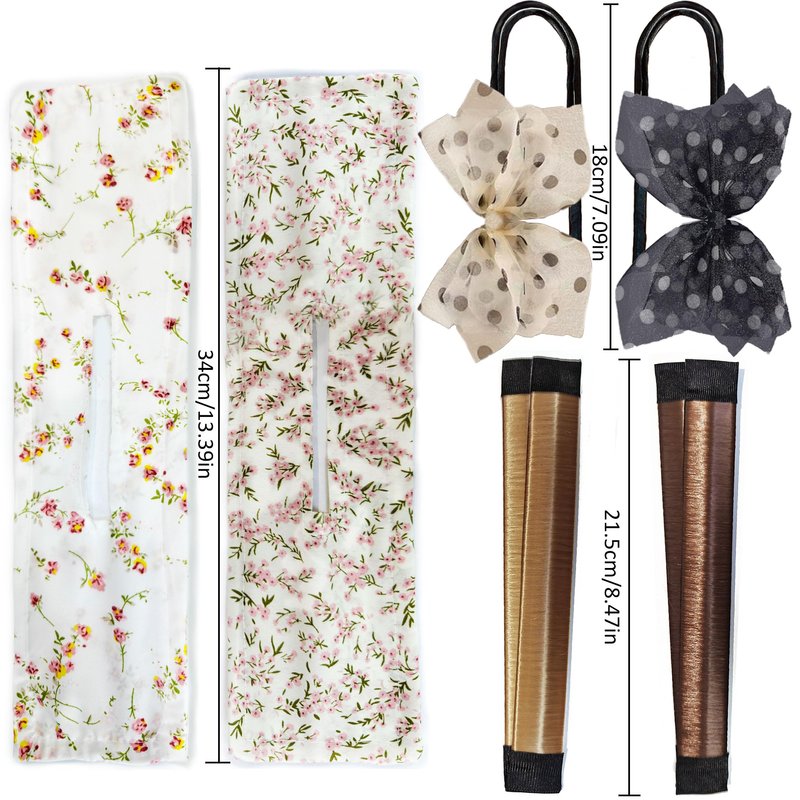 - 🎁【6PCS Hair Bun Maker Set】:Donut bun maker can style your hair into a bun in seconds without any clips, bands or bobby pins. Bow maker and flower maker with good stretch, can be done into a variety of hair styles, hair bun, sock bun, ballet bun, French bun, wave, etc! And they can hold your hair well without loosening or falling off.