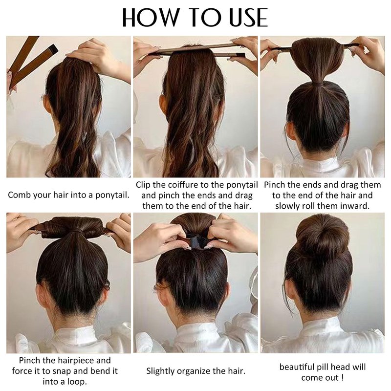 - 🎁【Easy to Use】:①Put your ponytail/long hair through the hole of clip hair bun maker then twist once or twice downwards to secure your pony tail. ②Pull down to the end of your pony tail but no to loose it. ③Roll inward until you feels it's tight, roll the ends to make a bun and twist the ends to secure.