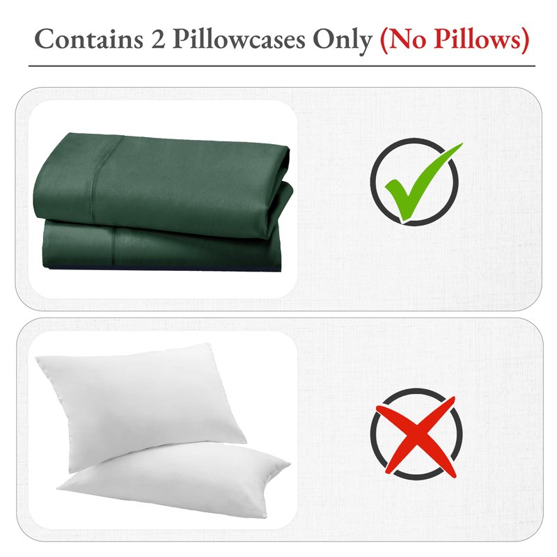 - Set of 2 Pillowcases (Pillows Not Included) - Our luxury 400 thread count 100% cotton sateen hunter green queen pillowcase pair is perfect for a restful night's sleep. Made with cooling and breathable cotton, providing comfort for all seasons and for any bedding set. It is designed to fit both standard and queen size pillows.