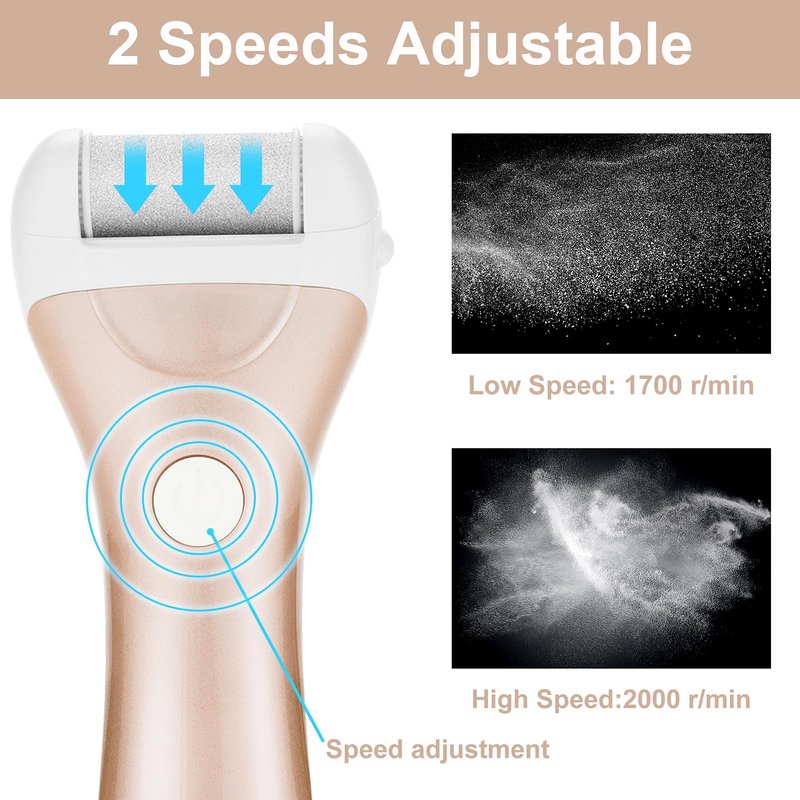 - 【2 Adjustable Modes】2 speed Replacements: 1700x/min when at low speed and 2000x/min when at high speed. Low speed is recommended for the callus of hands and more delicate skin care, while the high speed is suitable for stubborn thick callus and dead skin.