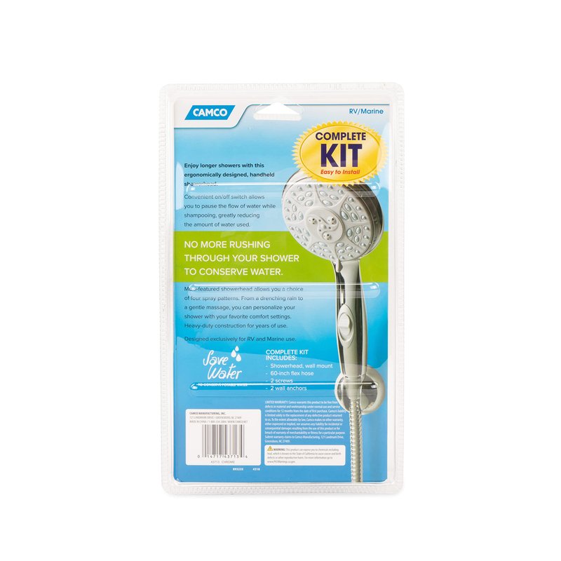 Camco 43713 RV Shower Head Kit with On/Off Switch and 60" Flexible Shower Hose (Chrome)