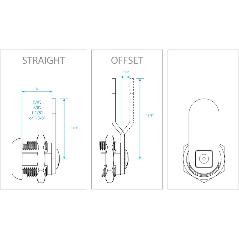 Camco Offset Cam Lock | Features an Easy Turn Thumb-Operated Style Lock, Includes a 5/8-Inch Offset and a Straight CAM, and Designed for New/Replacement Installations on RVs, Boats, and More (44333)