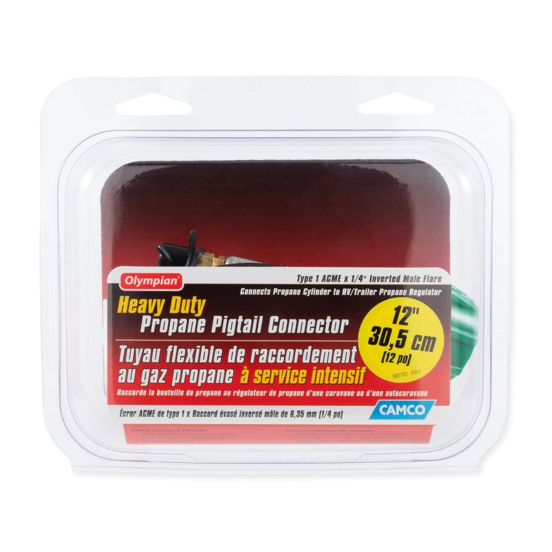 - Connects: Connects a propane cylinder to an RV or trailer propane regulator