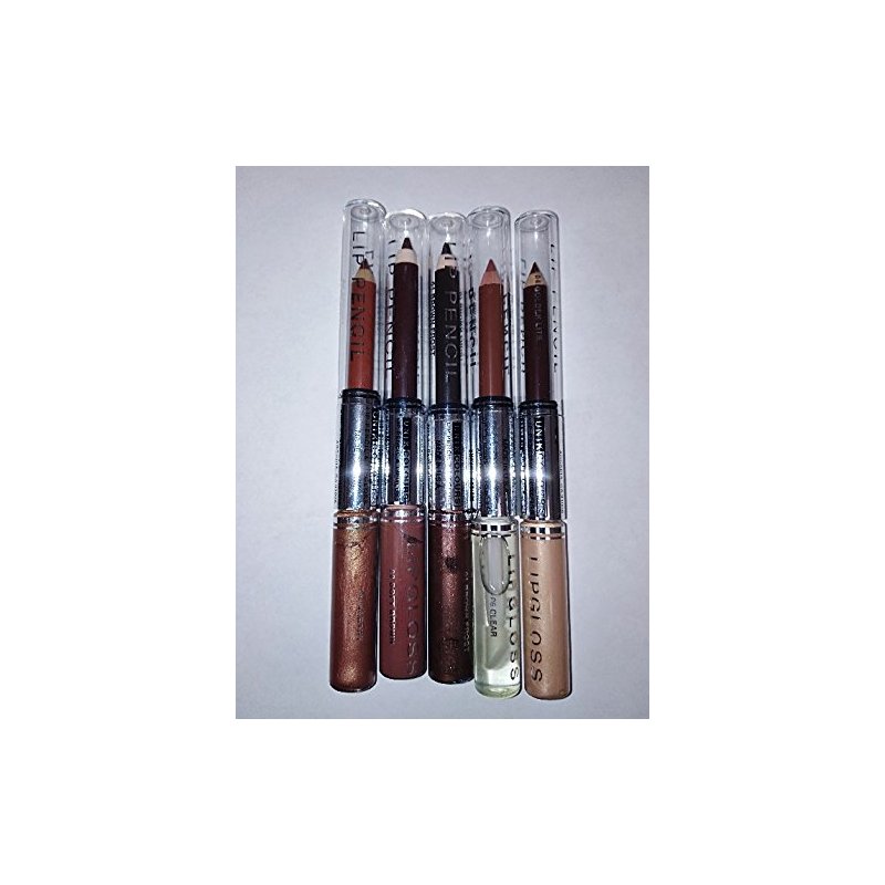 5 pc set dual end, 1 side lip pencil, 1 side lipgloss Shimmer finish for lipgloss Great for gifts Great for beginners color: brown frost soft brown earthy golden lite clear