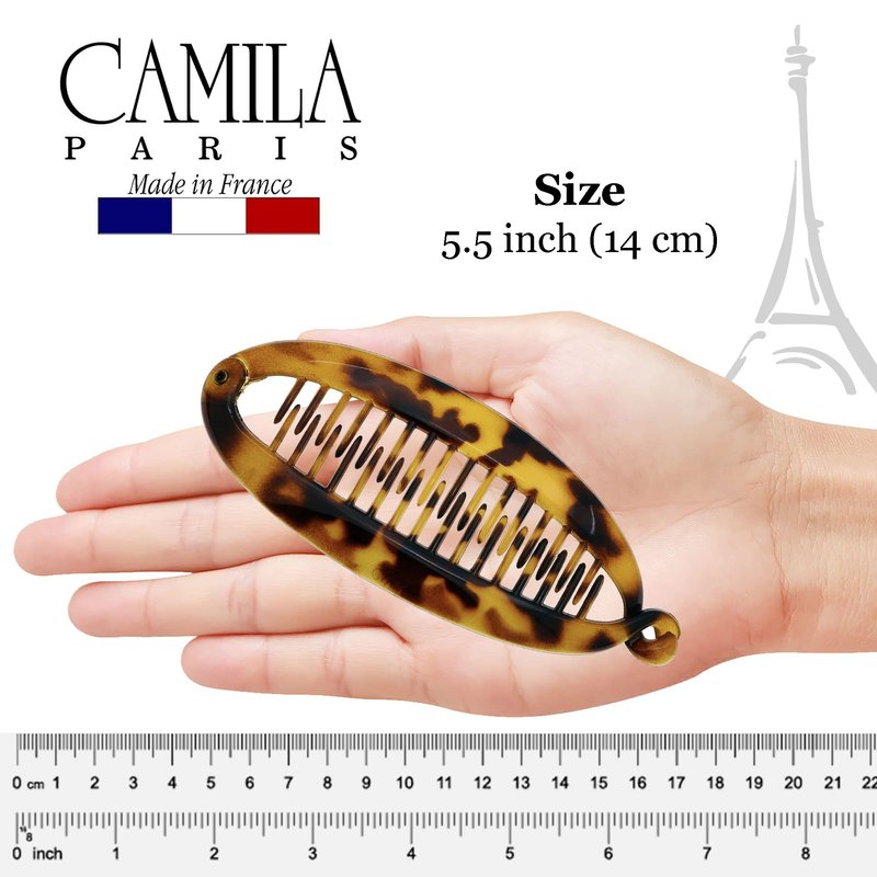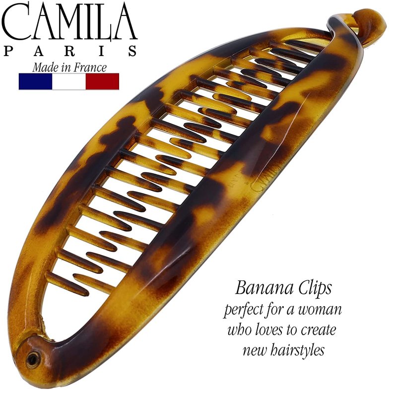 Camila Paris CP1578 2PK Small Size 5.5 Inch French Hair Accessories, Hair Banana interlocking combs. Strong Hold No Slip Grip for Women and Durable Styling Girls Hair Ornaments. Made in France with Cellulose Acetate. With its beautiful and timeless designs featuring styles as hair barrettes, hair clips, ponytail holders, hair bananas, headbands, Hair pins, and more, decorated with unique designs, prints, and patterns. Handmade pieces are ideal for special occasions and include a large selection of hair ornaments for everyday use. We count with innovative features such as French Grip System ideal for fine hair, Spring Cover no visible hinge, Grip Link hinge replaced for a durable rubber band that holds better and maintain the due hair for all day. Camila Paris collection are for all hair types, fashion hair tools for Tokyo brown dark light brunette blondes red heads; use for adults with curly wavy straight frizzy fine thin long medium mid back shoulder length hairstyle; cutting curling coloring drying or straightening. Camila Paris 20 years of professional experience and products knowledge, a high quality hair ornaments line. A staple of excellence in the hair accesories industry