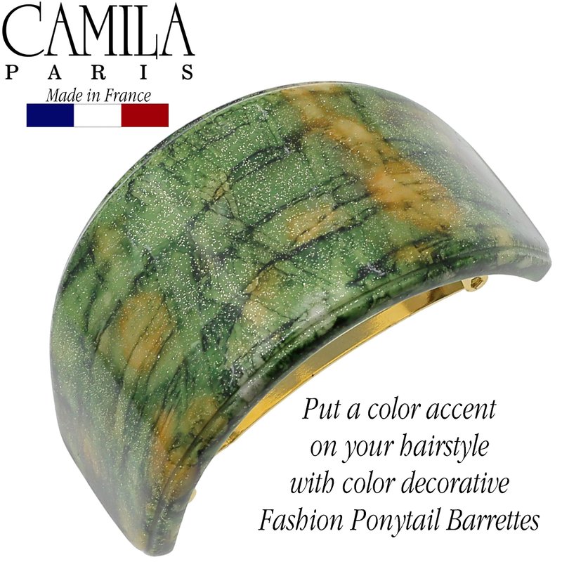 Camila Paris CP3233 Size 2.5 inch French Hair Accessories, Volume Barrette, Ponytail. Strong Hold No Slip Grip for Women. Durable Cellulose Acetate Styling Girls Hair Ornaments. Made in France with Cellulose Acetate. Green. With its beautiful and timeless designs featuring styles as hair barrettes for women, hair clips, ponytail holders, hair bananas, headbands, Hair pins, and more, decorated with unique designs, prints, and patterns. Handmade pieces are ideal for special occasions and include a large selection of hair ornaments for everyday use. We count with innovative features such as French Grip System ideal for fine hair, Spring Cover no visible hinge, Grip Link hinge replaced for a durable rubber band that holds better and maintain the due hair for all day. Camila Paris collection are for all hair types, fashion hair clip tools for black brown dark light brunette blondes red heads; use for adults with curly wavy straight frizzy fine thin long medium mid back shoulder length hairstyle; cutting curling coloring drying or straightening. Camila Paris 20 years of professional experience and products knowledge, a high quality hair ornaments line. A staple of excellence in the hair accesories industry