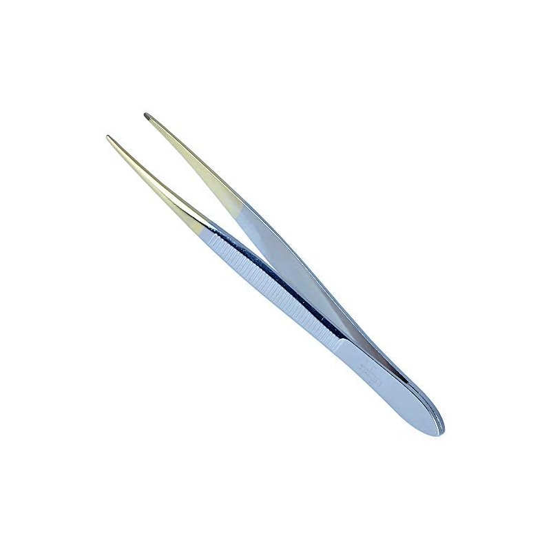 Camila Solingen Professional 3 1/2" CS32 Pointed Gold Tipped Tweezers are Made of high quality Solingen, German stainless steel which assures a long lasting cutting edge. Designed for a greater comfort and smoother action Solingen, German Stainless Steel construction eliminates the worry that the device will rust with ultra sharp surgical grade, stainless steel tip nips. A slim, sleek ergonomic design enhanced with a stunning gold and chrome silver finish brings comfort and pleasure with each use. Camila Solingen is trusted globally by professional beauty technicians as well as home users. Durable and anti-corrosive tools.