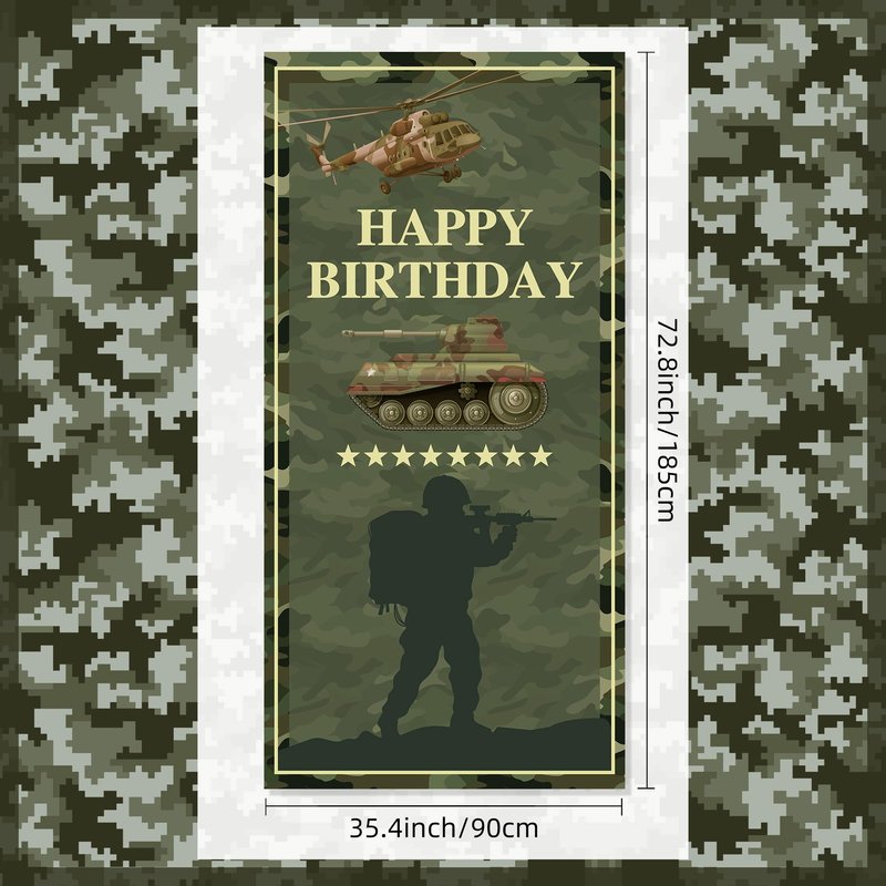 - Suitable scene:This camouflage birthday decoration is perfect for decorating your military-themed birthday party, camouflage-themed party, and other patriotic-themed birthday events. The classic camouflage background is not only full of the atmosphere of military life, but also has the silhouettes of soldiers, which is very fascinating, you can hang it on the wall, door, fireplace, or anywhere you want. It will add the perfect touch to your birthday party and will surely impress everyone.