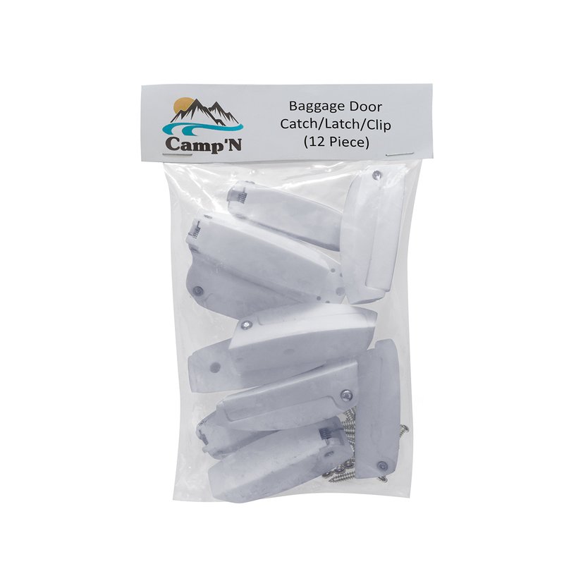 Camp'N - 12 Pack- Baggage Door Catch - Clip - Holder - for RV, Trailer, Camper, Motor Home Baggage Doors (White)