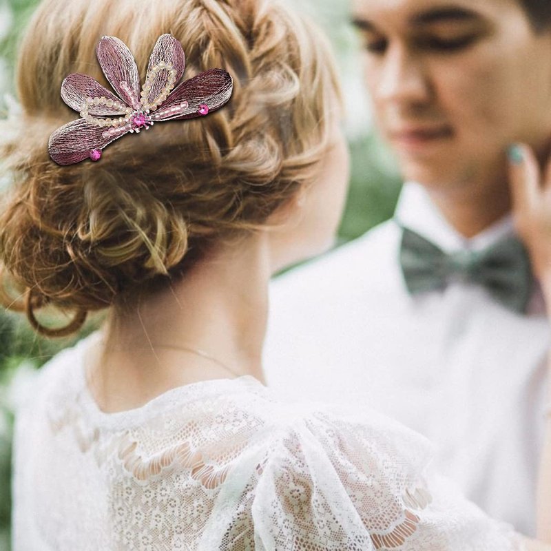- Metal copper wire hair comb has silver and purple colors interwoven with each other, very high class. Size: 3.5in*4.7in (9cm*12cm), suitable to match most hairstyles.