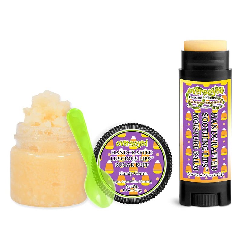 Candy Corn Soothing & Luscious Lips by OverSoyed Exfoliator & Chapped Lip Repair Lip Care Combo | Artisan Handcrafted to Order Orange Sweet Buttery Caramel Vanilla Flavored Exfoliating Sugar Lip Scrub & Lip Moisturizer Balm Gift Set