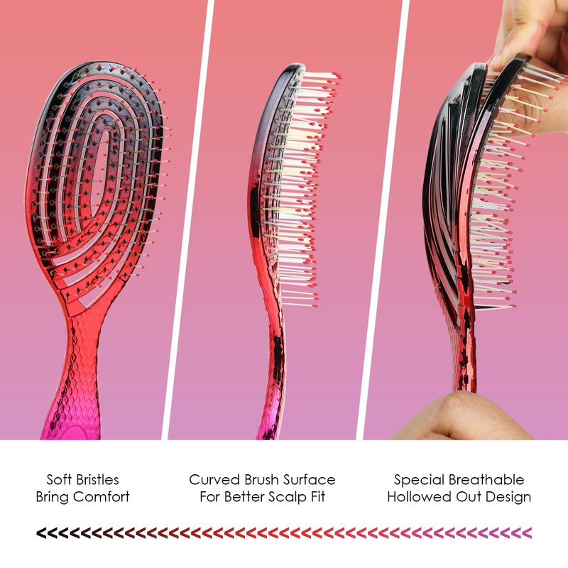 Detangling Wet Hair Brush Colorful Round for Straight Fine Hair Detangler Soft Bristles Vented Design for Blow Drying Women Men Medium Black-Red-Pink Gradient